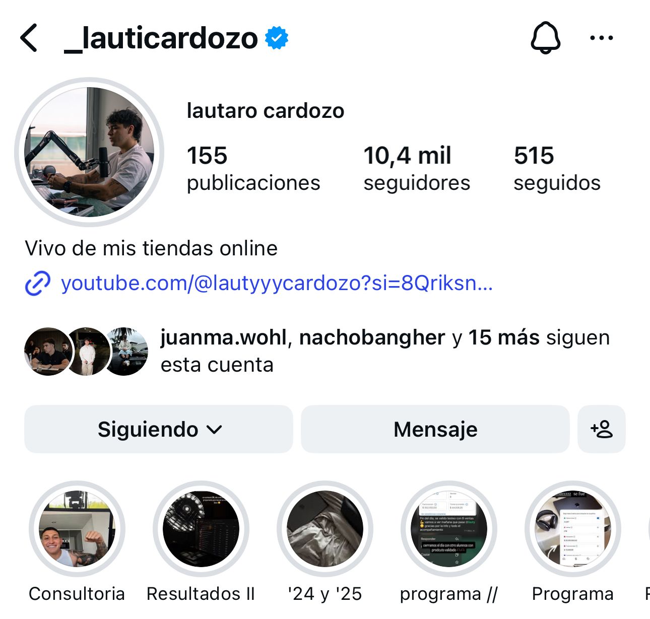 Lo levantamos de cero en redes. Le dimos las herramientas para manejar su marca y sus clases, alcanzando una facturación estable de $150K mensuales y crecimiento 100% orgánico.